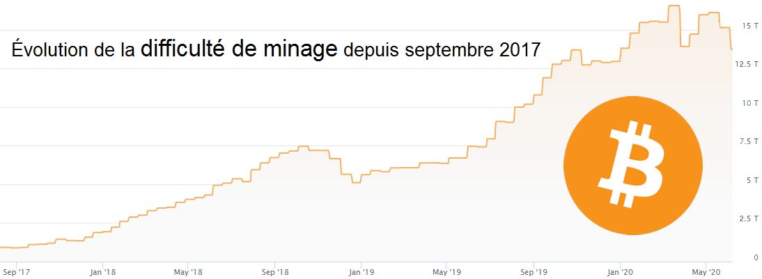 Rappelons que la difficulté de minage est réajustée tous les 2016 blocs afin que le temps de génération de ces 2016 blocs soit de 14 jours (donc une moyenne de 10 minutes entre deux blocs), quelle que soit la puissance de calcul déployée.