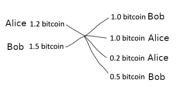 Ci-dessous un schéma très simple de CoinJoin :