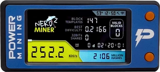 Le NerdMiner V2 est un projet open-source basé sur une carte ESP32-S3 avec écran intégré. Pas un ASIC — un microcontrôleur généraliste qu’on détourne pour calculer des hachages SHA-256. Résultat : environ 78 kH/s selon les versions, parfois 1 MH/s pour les modèles les plus récents.