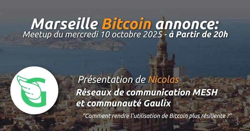 En savoir plus : https://t.me/MarseilleBitcoinMeetup – https://twitter.com/MarseilleBTC