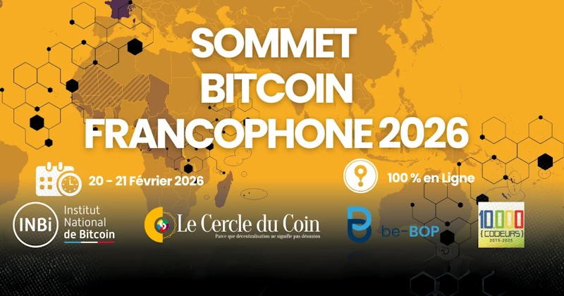 Le premier Sommet Francophone de Bitcoin aura lieu les 20 et 21 février 2026. Entièrement en ligne, ce sommet reliera les communautés Bitcoin d’Afrique, d’Amérique, d’Europe et d’Océanie. Initié par des passionnés francophones, il vise à mettre en lumière les acteurs locaux souvent invisibles, à partager expériences, défis et succès, et à tisser des liens durables entre entrepreneurs, éducateurs, développeurs et médias.